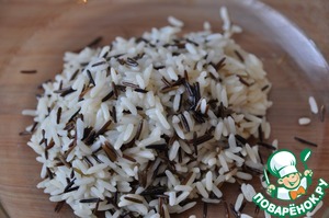 Берём рис "Акватика микс" от "Мистраль", заливаем водой в соотношении 1 к 2, доводим до кипения, убавляем огонь и варим при закрытой крышке 30 минут до полного впитывания воды.