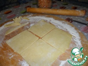 Тесто раскатать, разрезать на квадраты и выложить в формочки, смазанные маслом.