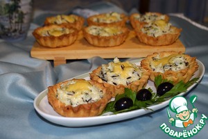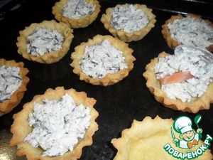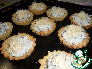 Каждую корзиночку посыпать тертым сыром и слегка запечь.
