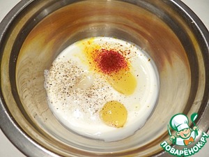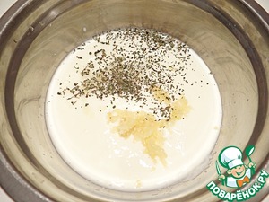 Ингредиенты для соуса перемешиваю. Убираю соус в холодильник, пока не приготовится запеканка.
