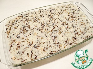 Меня заинтересовал рецепт слоеной рисовой запеканки, который повстречался на иностранном кулинарном сайте. Для этого блюда готовятся 2 разных по составу рисовых слоя, между которыми укладывают подготовленные кусочки куриного филе. Запеканка в оригинале готовилась из риса сорта "Басмати", я же использовала "Басмати Mix". Получилась вкусная, ароматная запеканка с золотистой корочкой.