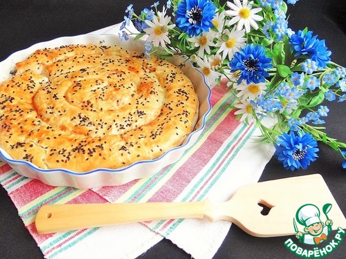 Предлагаю приготовить простой, но вкусный пирог с начинкой из пармезана, лука-порея и риса.