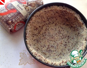 Полученную массу распределяем по форме, формируя бортики (лучше брать 22-24 см в диаметре, у меня 20 см, мне бортики показались немного толстоватыми). На дно формы предварительно кладем пергаментную бумагу. Оставляем на 1 час.