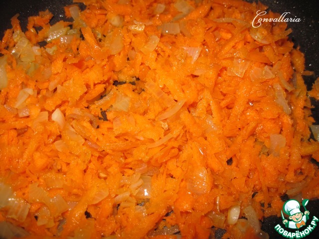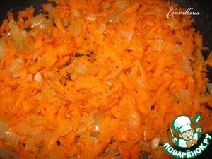 Мелко нарезанный лук и тертую на крупной терке морковь спассеровать на растительном масле.