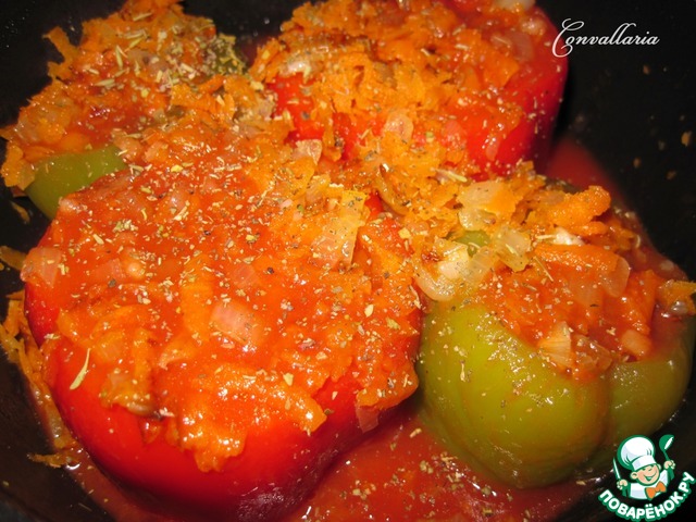 Вылить полученный соус к перцам и еще 20 минут тушить под крышкой. -