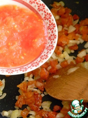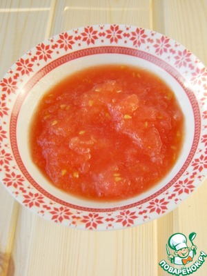 Помидор ошпарить кипятком, снять кожу, натереть на мелкой терке или измельчить в блендере.