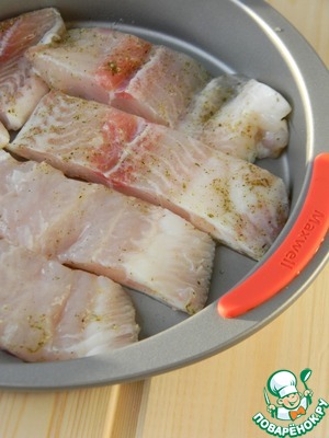 Рыбное филе (у меня "Пангасиус"), нарезать на порционные кусочки, посолить, посыпать приправой для рыбы и сбрызнуть лимонным соком, оставить мариноваться.
