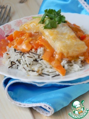 Филе белой рыбы с миксом дикого и белого риса, с соусом из овощей и кураги. Нежное, с приятной сладкой ноткой блюдо.