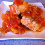 Выложить рыбку на рис или рядом, полив обильно соусом.