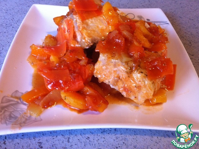 Залить соусом. Соуса получилось много, можно и 1 кг рыбы им залить, но я не стала ничего оставлять)).