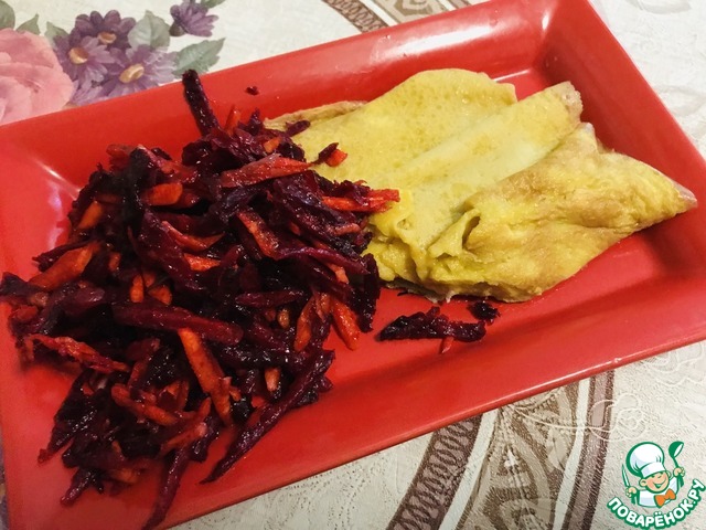Все овощи натираю на терке для корейской морковки. Мне нравится, чтобы полоски овощей были длинненькими.