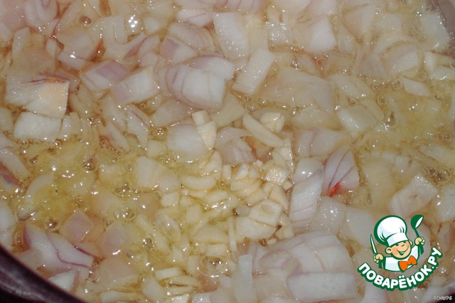 трём на крупной тёрке морковь, мелко режем перец, выдавливаем на чеснокодавке чеснок, все смешиваем, добавляем лук с маслом