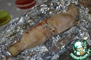 Пищевую фольгу смазать маслом, плотно обернуть рулетик фольгой (можно по два), закрутив края фольги.