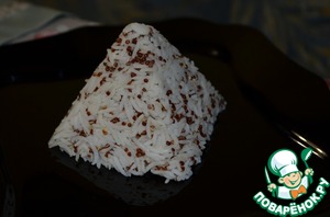 При подаче выложить на блюдо рис, уложив его пирамидкой.