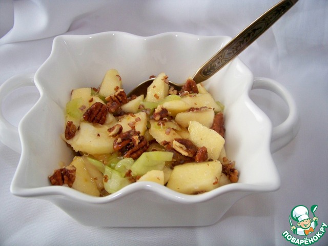 Салат готов. Выкладываем его в салатник и поливаем медовым соусом.
