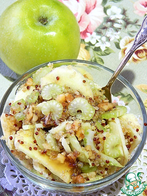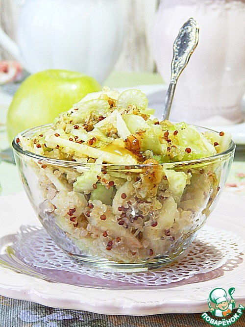 Киноа сварить и остудить. Тем временем яблоки почистить и нарезать на дольки. Сбрызнуть лимонным соком.