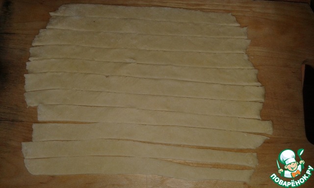 • Оставшееся тесто раскатать и нарезать полоской шириной около 1 см