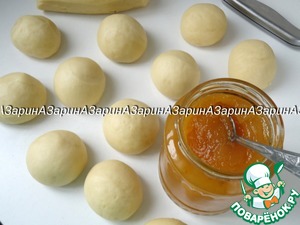 Подошедшее тесто разделить на 22 кусочка, из которых, сформовать шарики.