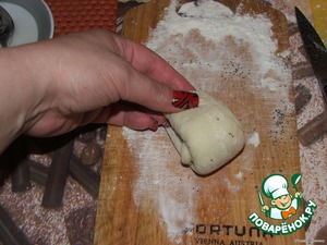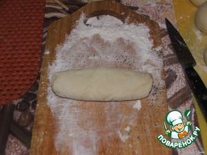 Потом разрезаем на кусочки и формируем из него шарики. От размера шариков и будет зависеть размер наших плюшек.