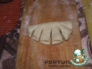 Надрезаем. Чем глубже разрез-тем "вывороченнее" плюшка. Только не перестарайтесь-а то получится две недоплюшки!:)