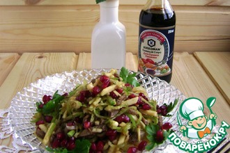 • Теперь соединить все ингредиенты в большой миске, добавить заправку с луком, добавить сюда же оливковое масло. Перемешать.
