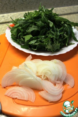 • Зелень петрушки измельчаем, лук нарезаем тонкими полукольцами.