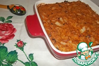 • Перекладываем нашу начинку в остывший корж. Выпекаем минут 40 при 180 град.