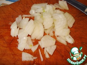 Лук репчатый мелко нарежем и обжарим на растительном масле.