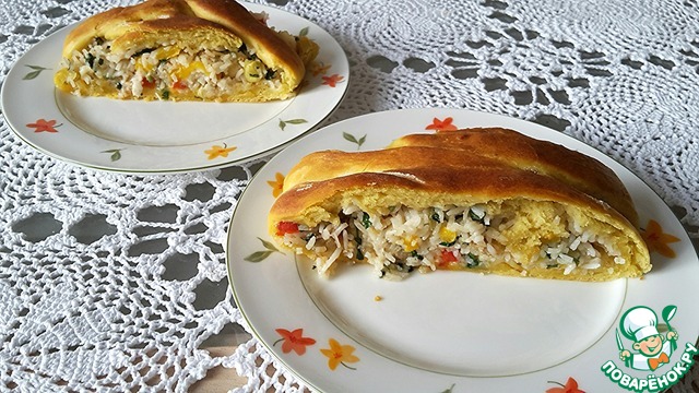 Рецепт «Пирог-плетенка с рисом и рыбой»: