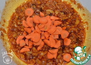 Добавляем морковь. Вместе с морковью можно добавить, при желании, болгарский перец