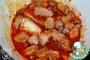 Накрываем крышкой и оставляем мясо тушиться примерно на полчаса, до мягкости -
