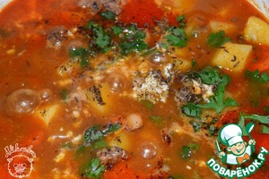 Бограч - это венгерский суп, очень популярный также на Закарпатье. Другие названия бограча - богораш, богорош, мадьярский гуляш, бограч-гуляш, бограч-гуйяш. Очень густой, сытный и согревающий суп, абсолютно несложный в приготовлении. Подача в буханке хлеба очень его украшает и придает свою изюминку вкусу. Суп съедается вместе с тарелкой )))