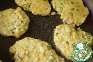 В сковороде побольше разогреваем масло, здесь тоже масло лучше брать ароматное, можно кукурузное, у меня кунжутное. Выкладываем по одной столовой ложке теста и обжариваем по 3-4 минуты с двух сторон, иногда прикрывая крышкой.