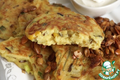 Рецепт «Рисовые оладьи с пикантными семечками»: