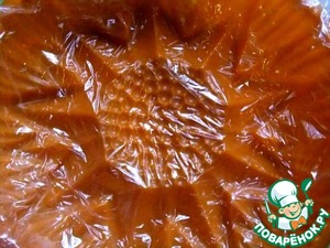 Достать форму и перевернуть суфле на блюдо. Снять пленку.