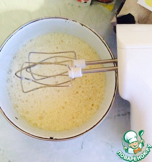 Замешиваем тесто для бисквита. Яйца и сахар взбиваем миксером минут 5