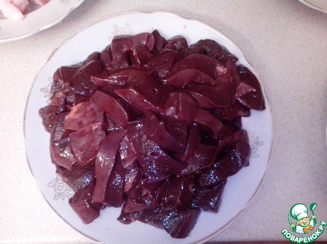 На другой сковородке обжариваю печень (чтобы не было крови).