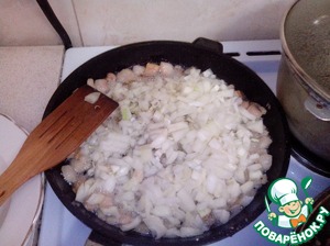 Печень порезать не сильно крупно, чтоб она хорошо прожарилась.