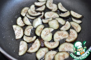 Баклажаны смываем от соли, отжимаем и обжариваем до румяности на оливковом масле.