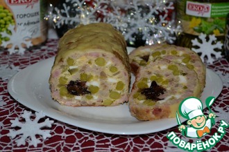 Сытный рулет из мяса птицы, с дробленным миндалём и мёдом.