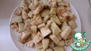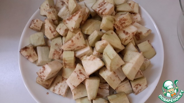 Я взяла 2 баклажана, среднего размера, почистила, порезала на средние кусочки.