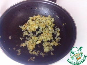 В сковороде, на среднем огне, с небольшим количеством масла, обжарить мелко нарезанный лук до мягкости, периодически помешивая.