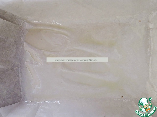 *Если форма небольшого размера, то тесто останется, Вы его можете завернуть в мембрану и оставить в морозилке для другой выпечки.