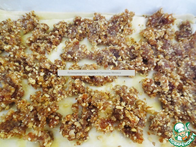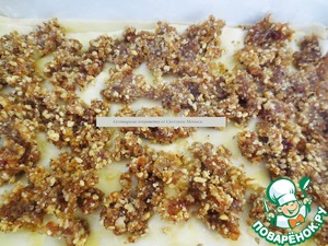 На поверхности второго листа, распределяем равномерным слоем начинку