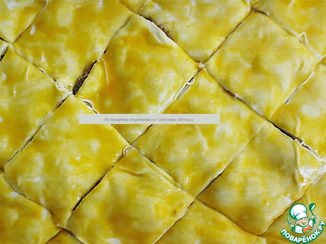 *Греческие сладости, типа этой, очень обильно пропитаны сахарным сиропом, что не свойственно десертам других народов, поэтому Вы можете кол-во сахара в сиропе уменьшить и исключить наличие меда.
