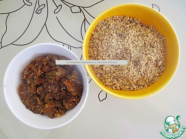 Смешать орехи с изюмом, добавить мед и еще раз хорошо перемешать