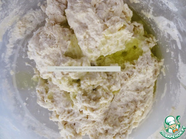 Начинаем замес теста, в процессе замеса добавляем оливковое масло