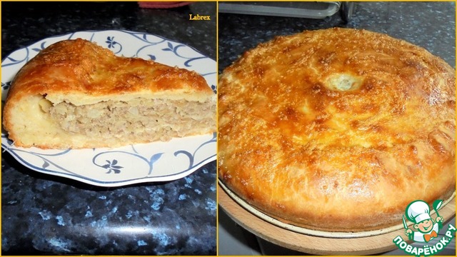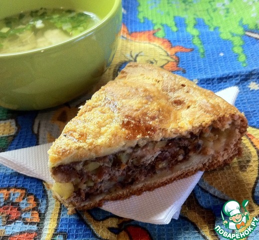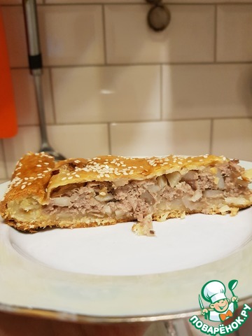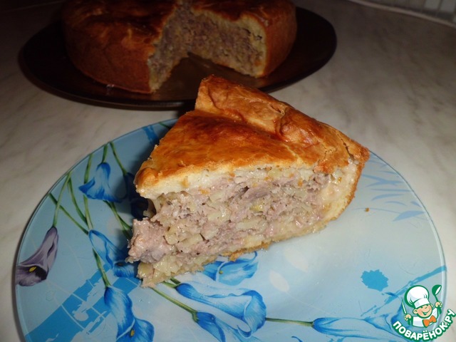 Легкий в приготовлении пирог с ароматной сочнейшей начинкой и нежным хрустящим тестом понравится всем, кто любит мясо. Его очень вкусно запивать горячим бульоном или сладким чаем. Начинку можно делать не смешанную, а из одной говядины. Картофель разрыхляет начинку и впитывает лишний мясной сок, который помешал бы тесту хорошо пропечься. Насколько я поняла, на Поваренке любят пироги, и поэтому я приготовила именно это блюдо для любимого кулинарного сайта.