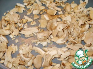Грибы порежем и обжарим на сковороде, добавив немного растительного масла 6-8 минут, пока выделившаяся жидкость полностью не выпарится.
