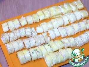 • Затем их свернуть и нарезать рулетики, тол. 1 см. Рулетики будут кудряшками овцы.